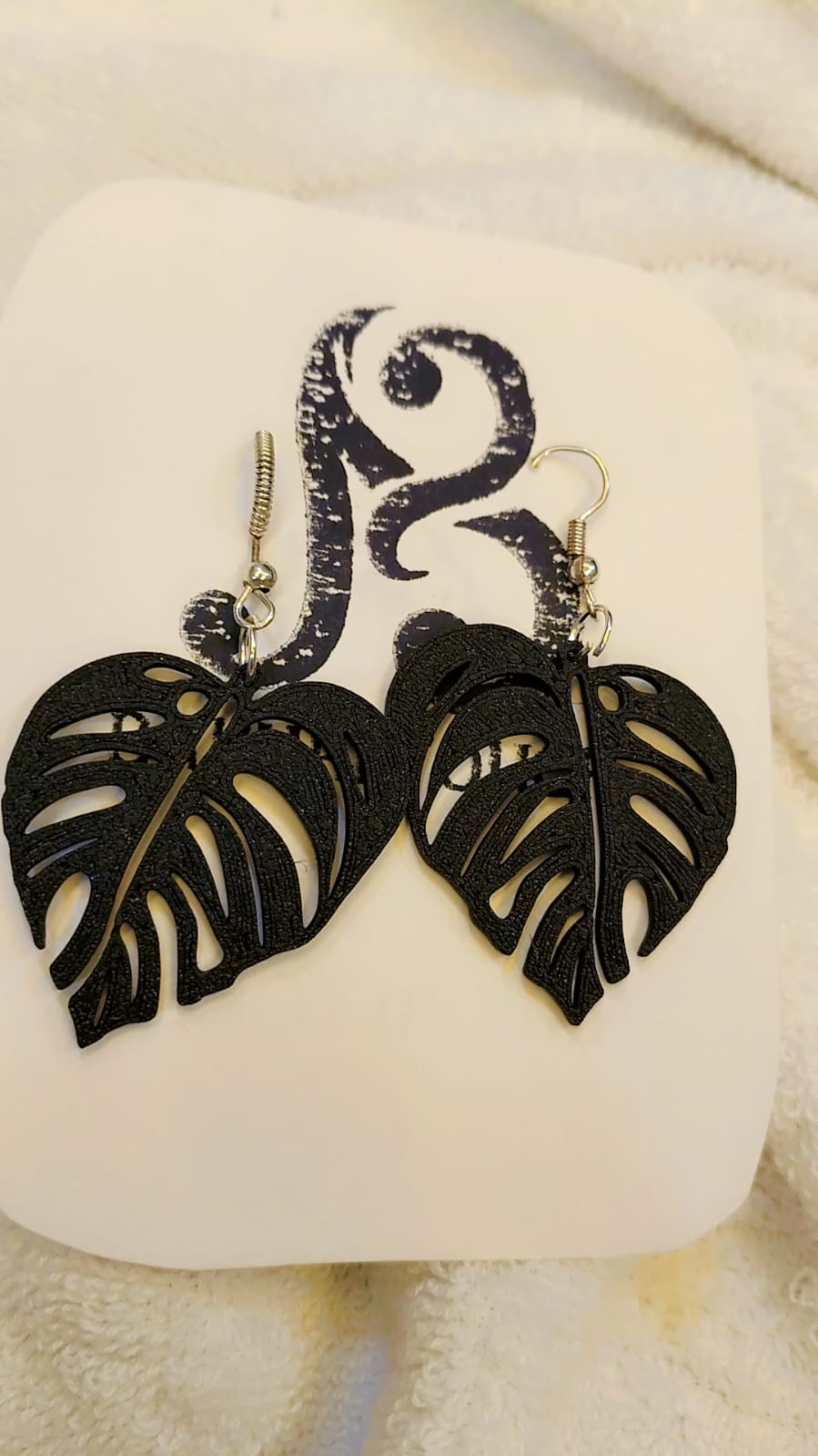 These 3D Printed earring feature sleek ,black Monstera-Leaf silhouettes with intricate  cut out detailing that